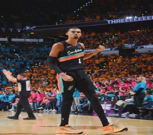 阿夫迪亚突破分球,创造了不少空位投篮的机会,但队友就是投不进。第三节还剩2分30秒,科内特补扣打进,文班在场边鼓掌庆祝。教主发现看台上有亮点,这才是顶级天赋。第四节刚开始,马刺拉开到20+,文班得分来到30+。